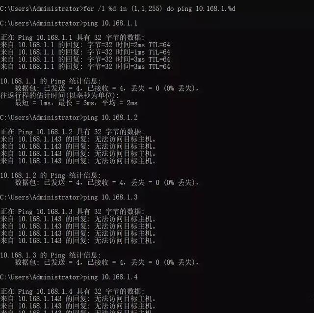 當輸入批量命令后,那么它就自動把網段內所有的ip地址都ping完為止。